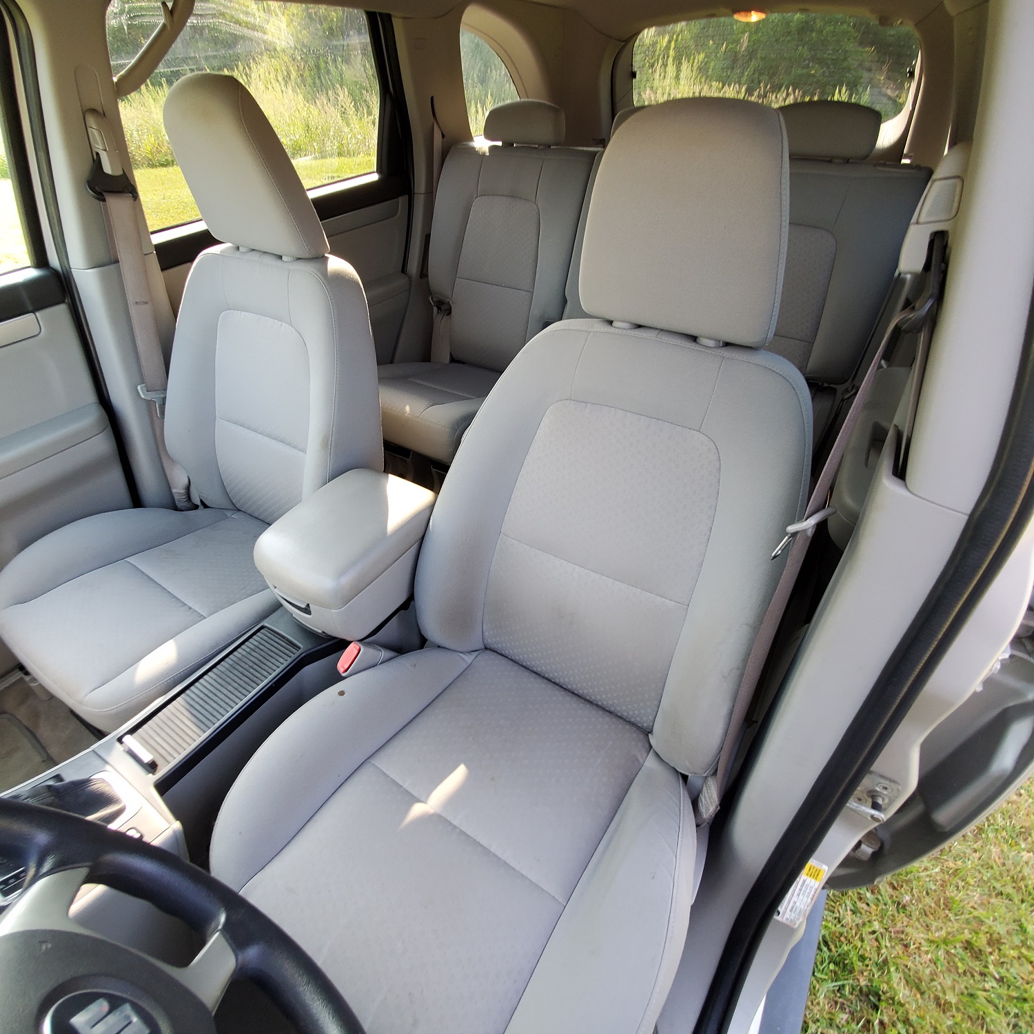 City 18/hwy 24 (3.6L engine/5-speed auto trans) (Estimated)|Fog lamps|Daytime running lamps|Aluminum roof rails w/crossbars|Rear spoiler|Aluminum front/rear bumper lower valance panel|Intermittent windshield wipers|Rear window wiper/washer|Privacy glass|Pwr mirrors|Multi-reflector headlamps|Overhead console w/reading lamps & storage|Pwr windows|Auto dimming mirror w/compass|Rear window defroster|Heated leather front seats w/pwr drivers seat|Front & rear carpeted floor mats|Front/rear air conditioning w/automatic climate control|3rd row split folding seat|Tire pressure monitoring system|2nd row 60/40 split bench seat|(4) 12-volt auxiliary pwr outlets|Security system w/immobilizer|Cruise control|Leather wrapped tilt steering wheel w/audio controls|Remote starter|Remote keyless entry w/panic button|Rear seat DVD entertainment system w/wireless headphones|Woodgrain trim on dash/door/shift knob|Pwr door locks|4-wheel anti-lock brakes w/electronic brake force distribution|Unibody frame w/full length under-body rails|17 aluminum wheels|Electronically controlled all wheel drive system|Nivomat self-leveling rear suspension|Traction control system|3.6L DOHC SFI 24-valve VVT V6 engine|P235/60R17 tires|5-speed automatic transmission w/manumatic shift|Electronic stability program|Traction control system|Advanced front airbags|Side curtain airbags|Child seat tether anchors|Electronic stability program|4-wheel anti-lock brakes w/electronic brake force distribution|Daytime running lamps|Rear door child safety locks